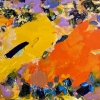 The horizontal composition is based on the interaction of yellow, orange-red and purple color spots. Smooth and sharp brushstrokes mix, leaving a whirlwind of emotions and a splash of color in the viewer's sensation. In the center are huge areas of pure yellow and orange, surrounded by a mosaic of bright and dark fragments. You can feel the rhythm, like music or the bustle of the city on a summer day, the delight and multi-layered nature of life.