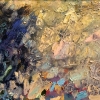 This abstraction is built on a combination of beige-gold and blue-violet shades. The upper right part of the canvas is filled with light, as if sunlight breaks through a dusty window or fog, smoothly flowing to the left side, where the darkness becomes deeper and more saturated. The brushstrokes are plastic, layered, creating the effect of air movement, the play of light and shadow, conveying the atmosphere of early morning or an impending storm. This approach evokes associations with the rapidly changing state of nature or human mood.