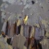 Before the viewer is a rhythmic abstraction reminiscent of a rainy spring forest or a foggy park. The palette is built on a combination of cold and warm gray shades, and rare peeking out flashes of yellow - as if the sun's rays are fighting for a place in dense foliage. Rough vertical brushstrokes imitate tree trunks, and chaotic strokes at the top resemble a crown or foliage tangled in fog. The painting is filled with an atmosphere of peace, meditation, but also hidden energy - as if nature is waiting before a breakthrough of fresh wind or rain.