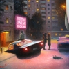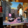 The painting is done in a realistic technique, but its content is not entirely real. The work took quite a long time, since I decided to work out all the details - from drawing the bricks of the building to each falling snowflake. (click on the painting to enlarge). An intelligent-looking man, returning to his native yard after a long business trip, is surprised by the changes that have occurred during his absence.