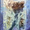 Композиция полностью заполнена сложными органическими узорами, напоминающими размытые контуры, отражения в воде или туманные видения, возникающие на границе сна и реальности. Эти формы словно пульсируют и расширяются, занимая всё пространство холста. Художница использует свой узнаваемый стиль, в котором концентрические круги и изогнутые линии создают эффект движения и вибрации.