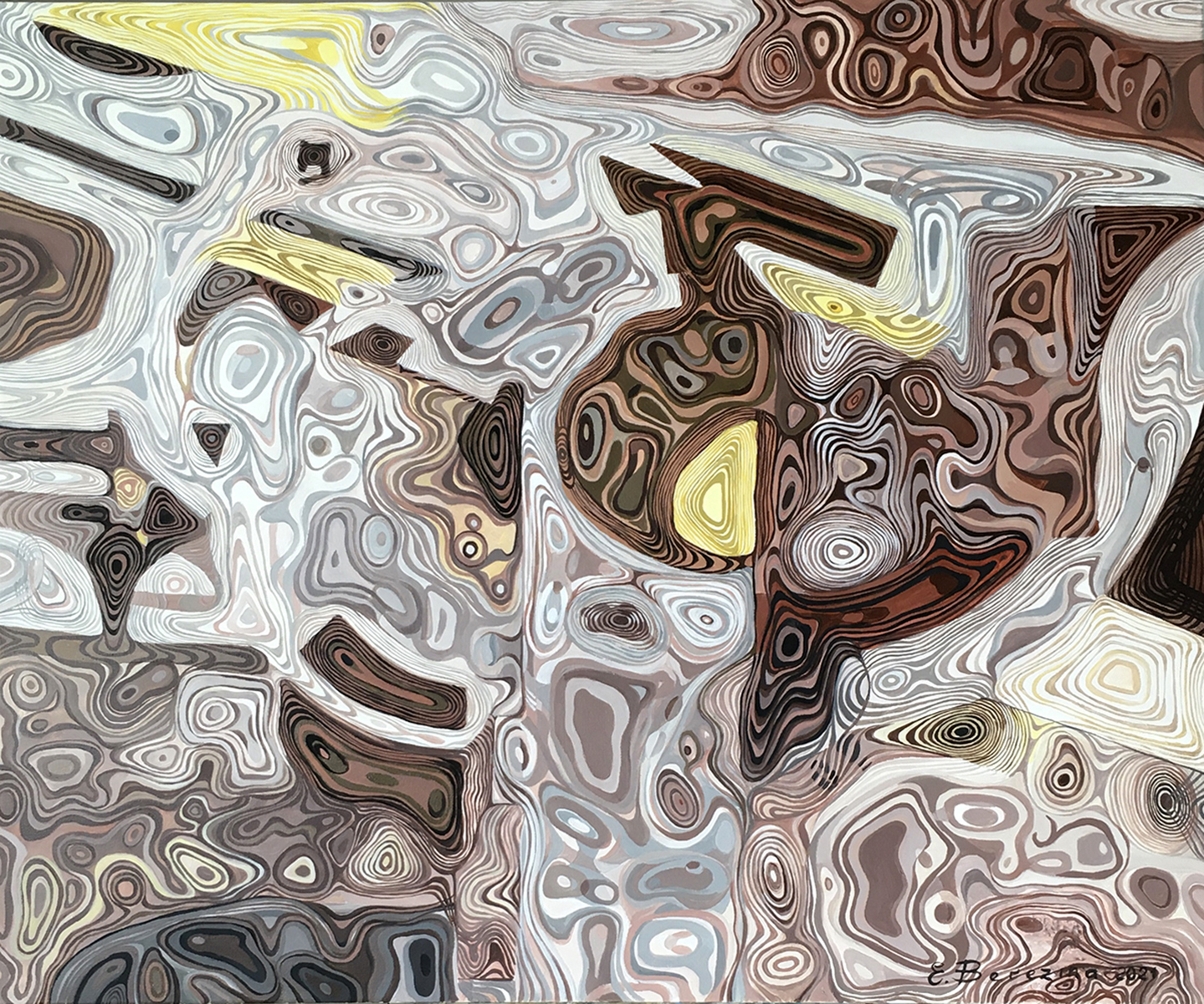 The wave direction is characterized by complex rhythmic organization, color pulsation, which visually creates the effect of the passage of time, rhythm, color, and the plastic alternation of various forms of lines. It is a search for the newest forms of expressing the wave structure of the world, the interpenetration of spaces and universal interaction, multidimensionality, and the boundlessness of endless flows of types of energies, emotionality, and expression in a painting.