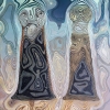 The wave direction is characterized by complex rhythmic organization, color pulsation, which visually creates the effect of the passage of time, rhythm, color, and the plastic alternation of various forms of lines. It is a search for the newest forms of expressing the wave structure of the world, the interpenetration of spaces and universal interaction, multidimensionality, and the boundlessness of endless flows of types of energy, emotionality, and expression in a painting.