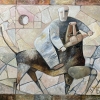 Картина «Всадник» художницы Елены Березиной — стилизованное монументальное произведение в духе примитивизма и кубизма, исследующее тему власти, контроля и движения. Работа отличается строгой геометрией и сдержанной, почти монохромной палитрой.