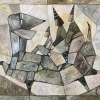 Весь пейзаж, окружающий путешественников, также фрагментирован геометрическими блоками, что создает ощущение древности или застывшего момента времени. Цветовая палитра сдержанная, что позволяет акцентировать внимание на форме и структуре, а не на ярких эмоциях.