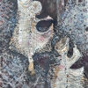 A vividly expressed still life, in the center of which are two large dried fish, suspended against the background of colorfully painted fishing nets. The artist drew our attention to the texture: the rough, sharp silhouettes of the fish emphasize the working atmosphere of the fishing farm. Many white lines and chaotic strokes are a network that creates dynamics and emphasizes the “marine” character of the image. The still life is full of life and contrasts: a dark background and a light body of the fish, rough details and a feeling of a slightly rough, but real life.