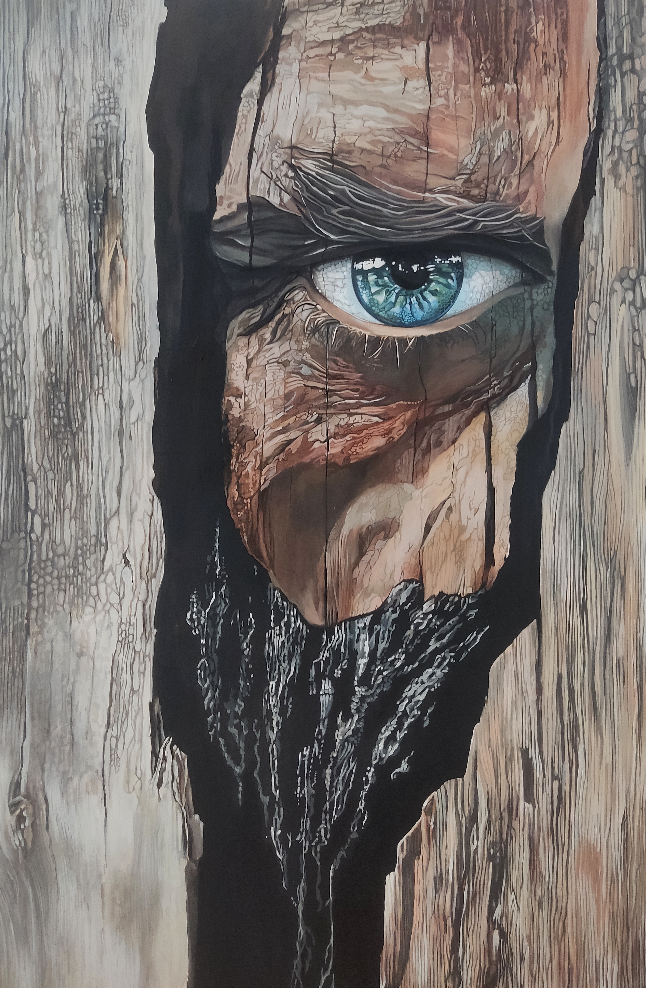 This work from the Shigir Idol series is dedicated to the oldest monumental sculpture in the world, which is approximately 12,000 years old. It examines the meaning of the idol for the people of that time and its personification. The Shigir Idol probably symbolized spirituality, acting as an object of worship and reflecting the religious ideas of its time. It could be associated with natural forces, emphasizing the dependence of people on the environment. In addition, the idol could personify the social structure, demonstrating the unity of the tribe and its cultural traditions. It may also have reflected mythological ideas associated with legends and myths. Although the question of the meaning of the Shigir Idol and its symbolism remains a mystery, it is obvious that it embodied the cultural values of its time.