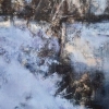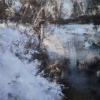 The last work depicts a winter evening by a frozen river. The foreground reflects a subdued golden light, possibly sunset. The icy edge of the water, the uneven surface of the snow and the trees slightly covered with frost are made with impressionistic brushstrokes. The palette consists of cold blue-gray, white and slightly warm ochre tones. The painting is filled with a sense of peace, contemplation, it seems as if the silence of a winter evening envelops everything around, and only the splash of water under a thin crust of ice is heard.