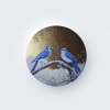 A round composition, in the center of which are two blue jays on a branch. The composition is almost identical to the previous one, but here special emphasis is placed on the symmetry of the circle, which gives the scene harmony and completeness. The background, stylized as a gold leaf, softly illuminates the blue feathers of the birds. Along the edge are light outlines of branches and leaves, as if eclipsed in a mysterious glow. The work resembles Japanese or Chinese painting and is ideal for meditative contemplation.