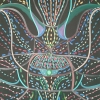 At the center of attention is a stylized image of a flower, executed with fine detail. Its shape, resembling both a plant and a mystical creature, radiates peace and wisdom. It seems that it holds the secrets of the universe, which are revealed only to those who know how to listen and see.