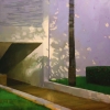 I was inspired by an amazing combination of strict simple geometric man-made shapes and natural living soft lace of shadow and light moving from the wind. At such moments, I usually freeze and watch this play of light and color with fascination. Hoping to share my feelings with you, I paint such works.