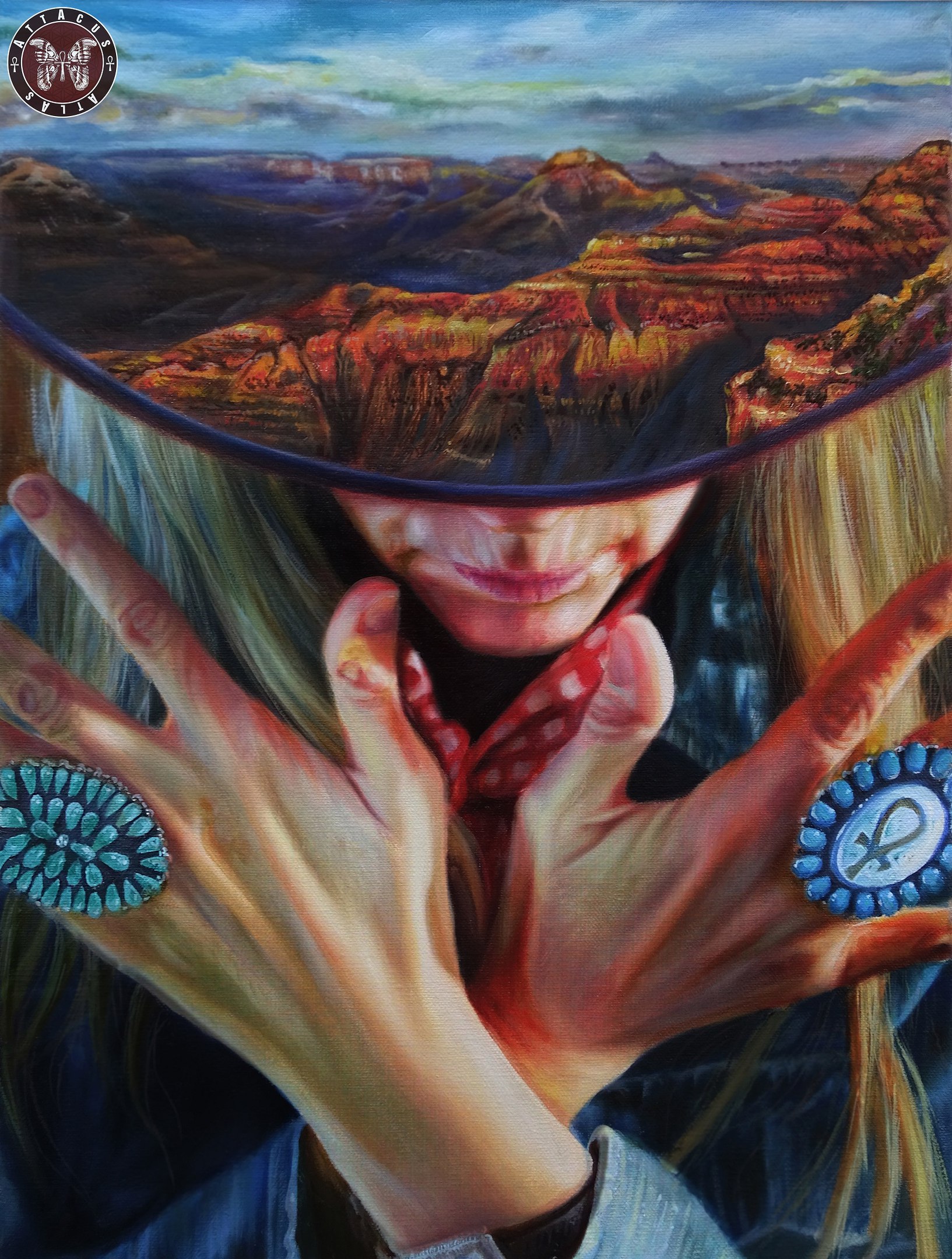 The presented work by Attacus Atlas is not simply a portrait, but a visual exploration of the connection between humanity and nature, an intertwining of the inner world and the outer. The artist creates a mesmerizing and slightly mysterious image, inviting the viewer to reflect on the role of nature in shaping personality, on our responsibility to preserve the environment, and on how often we seek answers to our questions by turning to the wisdom of ancestors and to the forces of nature. This canvas is not about a specific person or place, but about a state of soul, about the search for harmony, and about how important it is to be able to see a reflection of the Universe in each of us.