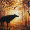The golden autumn forest, executed in warm, bright tones, creates a feeling of beauty and peace. However, even this beauty cannot hide the sadness and longing that are felt in the figure of the wolf.