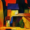 At the center of attention are the village houses, immersed in the setting sun. Their simple forms, bright colors, and the play of light and shadow create a sense of coziness, warmth, and mystery. It seems that behind their walls life is in full swing, full of secrets and stories.