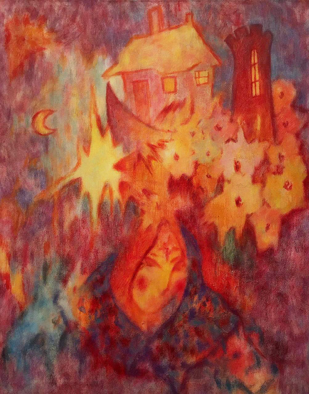 The painting is dedicated to the abstract image of a house, the feeling of which will be familiar to everyone, warm memories of childhood, mixing fantasy and reality. A house that will forever remain in memories.
