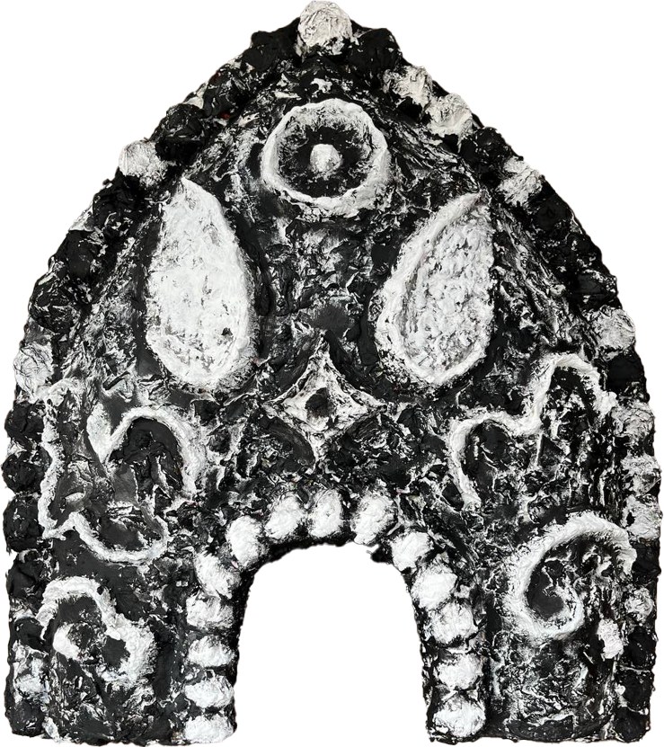 Kokoshnik is a visual exploration of cultural code and memory. Through stylized images and the tactility of papier-mâché, evoking a sense of something native and familiar, the artist turns to the archetypes of the Russian collective unconscious, adding a mystical, chthonic sound to them.
