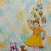 This canvas depicts a girl in a yellow dress, suspended like a doll on strings held by a large hand descending from the top of the painting. Lace, masks and other toys at the bottom emphasize the theatrical nature of the scene. The child's face is alive, filled with emotion. The background is done in pastel colors, creating an atmosphere of unreality. The painting touches on the theme of childhood, manipulation and the search for one's own freedom.
