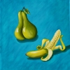 A mature fruit is not just a still life, but a real comedy of light coquetry played out by two fruits.