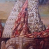 This work takes the viewer into a world of architectural fantasy. In the center are gigantic, spirally twisted towers, similar to the Tower of Babel, decorated with arched windows and enveloping more lively elements, similar to fabrics or ribbons. The towers are surrounded by elements of anatomy - fingers, palm - they seem to support these buildings, turning the architecture into an unusual combination of organic matter and stone. The color scheme is muted, calm, with a predominance of ochre, terracotta and gray shades. The work is at the junction of dreams and reality, symbolizing the fragility and grandeur of human buildings and dreams.