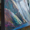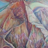 The painting depicts a mountain landscape, full of light and energy. A large mountain occupies almost the entire space of the canvas. Mysterious figures and symbols are visible on the front side of the mountain, hinting at spirituality and mysticism. At the bottom right is the silhouette of a bear, who seems to be watching what is happening. Light streams and rainbows, avoiding the peaks, create an atmosphere of fairy tale and magic.