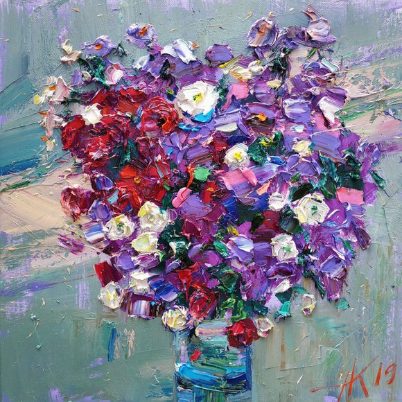 This painting can be hung on the wall of your apartment, house, office, restaurant, or hotel and will be a wonderful decoration for your interior. You can buy online the artwork "Bouquet" measuring 40 x 40 cm with free shipping to your location!