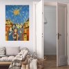 This painting can be hung on the wall of your apartment, house, office, restaurant, or hotel and will be a wonderful decoration for your interior. You can buy online the artwork "Street under the orange sun" measuring 80 x 119 cm with free shipping to your location!