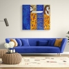 The diptych is painted with acrylic paints with gold foil, varnished, cotton canvas on a stretcher.