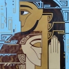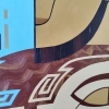 The geometricism and laconicism of the composition emphasize the idea of trust as the foundation of relationships between people. Two stylized figures, touching foreheads and palms, form a single whole. Large golden-brown fills and strict blue lines create a sense of inner stability. The painting speaks of psychological and spiritual closeness, the ability to open up and support each other.