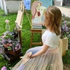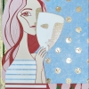 "Self portrait" is a multi-layered and symbolic work, in which reflections on the artist's inner world are combined with theatrical motifs and the ritual of revealing one's personality. The composition is built around a female figure with expressive facial features and long hair in soft pink shades. In her left hand, the heroine holds a white mask, part of which is painted in gold; this detail becomes the central symbol of the painting.