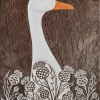 The series of paintings "Geese" is created in a decorative style that combines minimalism and elements of symbolism. The subjects are depicted graphically, emphasizing simplified shapes and lines, which adds sophistication to the works. The color palette is limited, enhancing the expressiveness of the paintings.