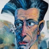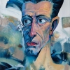 The painting «When you need to rest» by Konstantin Kansky is a powerful, expressive portrait that deeply explores the state of fatigue and inner struggle reflected on a person's face. The work is done in a stylized, grotesque manner characteristic of the artist, yet it conveys profound human emotions.