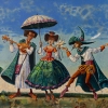 «Two under an umbrella» by Kansky is not just a depiction of three figures but a vivid theatrical study of human relationships, music, and the beauty of the moment. The painting radiates liveliness, romance, and humor, inviting the viewer to become part of this elegant, almost dance-like scene.