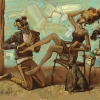 Картина «Легкие прикосновения» художника Константина Канского — это интимное, чувственное произведение, раскрывающее тему заботы, нежности и взаимодействия между мужчиной и женщиной, а также их верным спутником. Работа выполнена в характерной для художника стилизованной, гротескной манере, наполненной эмоциональным подтекстом.