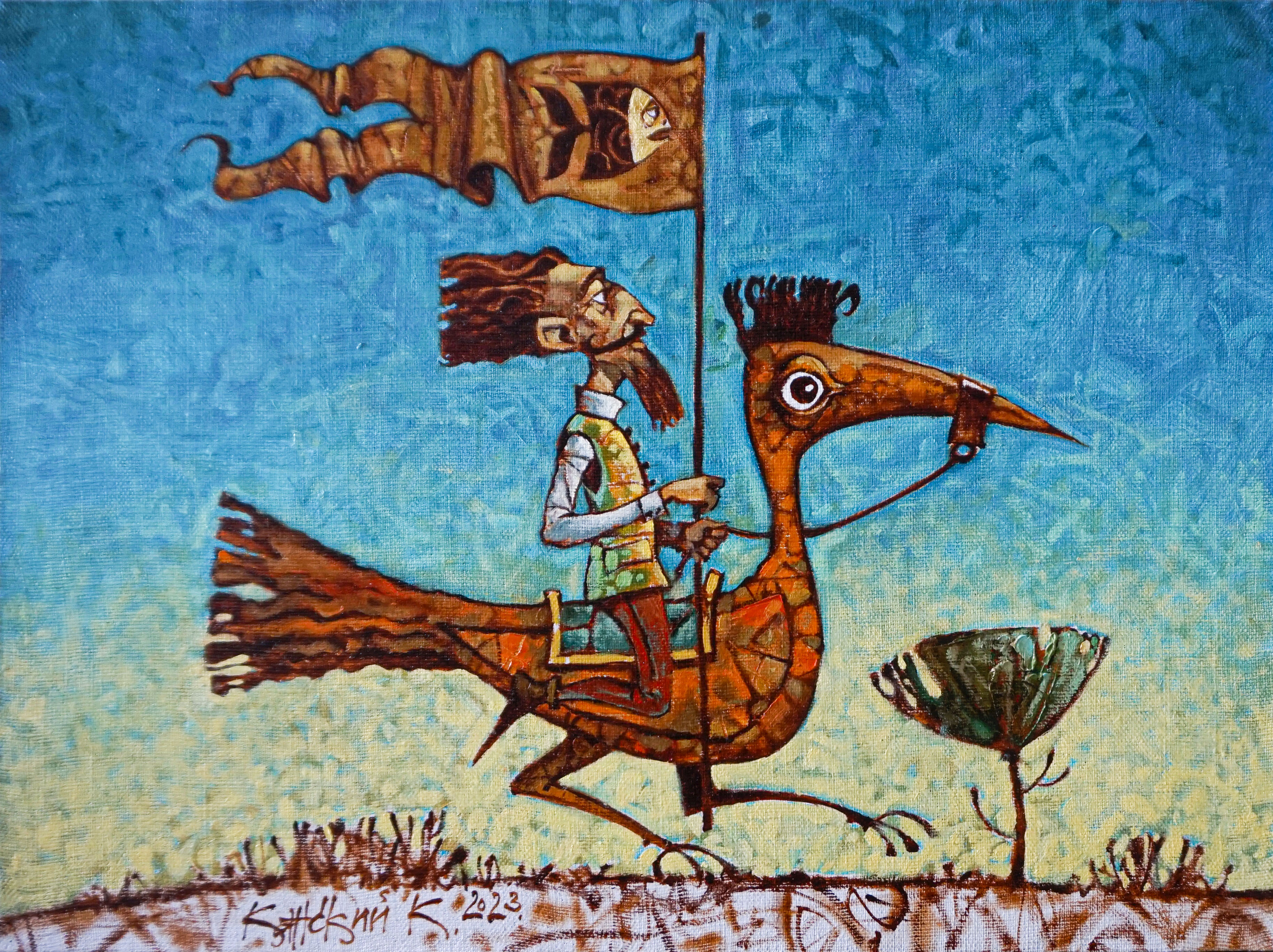 «Symbol of good luck» by Konstantin Kansky is not just an image of a rider but a deep, ironic tale about the search for happiness and adventure. The painting radiates energy, optimism, and belief that even in the most unusual circumstances, one can find their symbol of good luck. This work invites the viewer into a world of fantasy and possibilities.