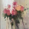 This work is done in an expressive manner: a bouquet of lush pink roses is depicted using wide, textured brushstrokes of oil paint. The images of flowers seem to dissolve in a light, neutral background, creating a feeling of freshness and lightness. The artist does not draw details - he conveys the essence of the flower through color, the energy of the brushstroke and the play of light, which creates a holistic poetic impression of the summer composition.