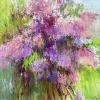 The painting depicts a bright and lush bouquet of lilacs, made with a wide textured brush. Rich purple, pink and lilac shades predominate, which combine beautifully with the green background. The lively, improvisational performance conveys the aroma, freshness and spring mood of this composition.