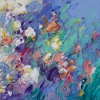 The work is dedicated to a floral motif - there are no obvious trunks, but only a whirlwind of buds and petals in motion. Lavender, violet, lilac, white and yellowish shades predominate, painted with bold round strokes. The flowers seem to swirl in the wind against a transparent azure blue background. The lack of a clear focus and horizon line creates the illusion of movement and lightness, complete freedom for the viewer's imagination. The picture is filled with the feeling of a blooming garden in the midst of spring.