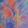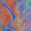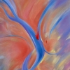 Эта абстрактная картина похожа на сплетение в танце двух разных цветовых энергий: оранжево-красной и сине-фиолетовой, как энергия инь-ян. В результате этого сплетения рождается нечто новое, оригинальное и очень сильное.