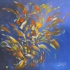 This artwork is full of air and joy in bright, positive colors. The main colors hear are blue- color of deepness and intuition and orange- the color of happiness, joy, and life energy.