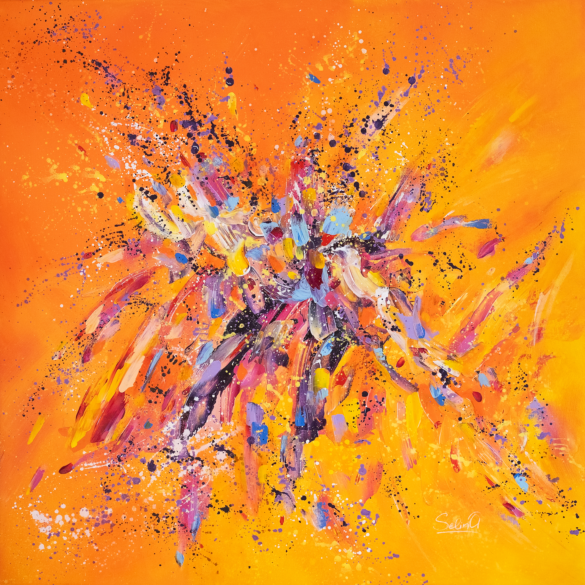 This artwork is full of air and joy in bright positive colors. The main color here is orange- color of happiness, joy, life energy. Bright colors bring bright energy into your space and this painting will relax your mind and harmonize your space.