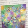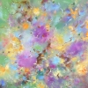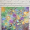 This captivating work showcases a vivid explosion of color and energy, effortlessly blending shades of green, purple, yellow, and blue. The canvas lives with swirling motions, creating an ethereal and dynamic visual experience. The abstract nature of the piece invites viewers to explore the interplay of light and color, evoking a sense of movement and vitality. Each brushstroke contributes to a harmonious yet chaotic unity, reminiscent of a celestial nebula.