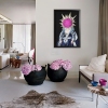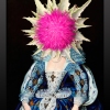 The canvas depicts a female portrait in the style of a formal Baroque portrait: an exquisite dress strewn with pearls and jewelry, with embroidery in rich blue and silvery-white tones. However, the face is replaced by a bright pink-purple ball of thistle with hard pale green leaves radiating out to the sides. The contrast between the strict luxury of the palace attire and the wild, almost aggressive organic nature of the flower creates a surreal effect, adds mystery to the image, and emphasizes an unusual view of the theme of female beauty, the secrets of nature, and human individuality.