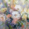 "Flowers of Sofia" is executed in a delicate, pastel palette, where white and cream flowers are softly combined with shades of pink, blue and light green. The canvas fascinates with the transparency of brushstrokes and the richness of the light play, as if the bouquet is illuminated by the rays of the early morning sun. The painting radiates warmth, a feeling of purity and freshness. The free composition creates the mood of the first days of spring, when everything around is filled with joyful anticipation and inspiration. "Flowers of Sofia" is perfect for decorating a bright living room or bedroom, bringing harmony, peace and light elegance to the house.