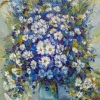 This original artwork "Bouquet with blue daisies" was created by the contemporary Russian artist Alexander Sergeev and is available for sale online.