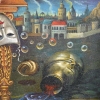 Vladimir Kuchinskiy’s painting “Contemplation” is a complex and multifaceted symbolic composition in which the artist explores the themes of spirituality, wisdom, beauty, and the connection between man and the cosmos. He uses a bright, yet harmonious color palette and a detailed painting style to create an atmosphere of mystery, enigma, and deep philosophical reflections. It is not just an image of a woman sitting on a throne, but like a visual embodiment of the idea of meditation, the search for truth, and the unity of all things in the universe.