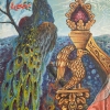 In the corners of the painting are various symbolic figures and objects that complement and expand the main image. In one corner you can see a peacock, symbolizing beauty, pride, and wisdom. In another corner is an angel, as if protecting the woman from evil and patronizing her spiritual path.