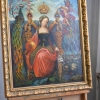 At the center of attention of the painting is the figure of a woman sitting on a throne. Her pose, calm and serene, expresses focus and detachment from the external world. The woman’s face, executed in a realistic manner, radiates wisdom, tenderness, and compassion. Her eyes, closed or downcast, speak of her deep immersion in herself and in her thoughts. She, like an embodiment of spirituality and inner strength, is the center of the universe, around which all events and phenomena revolve.