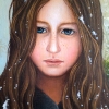 The girl’s clothing, executed in dark tones, emphasizes her loneliness and immersion in herself. The long cloak, hiding her figure, creates a feeling of mystery and enigma. Snowflakes are visible on her hair and clothes, indicating that the first snow is falling.