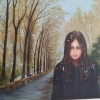 On both sides of the road grow trees devoid of foliage. Their branches, bare and thin, seem to reach for the sky, creating a feeling of sadness and longing. The trees, like witnesses to the arrival of winter, watch the girl walking along the road.
