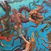 Against the warriors are various creatures: snakes, centaurs, mermaids, and other spawn of dark forces. The faces of the monsters are distorted by malice and hatred; they seem to symbolize everything that threatens the well-being and freedom of people.
